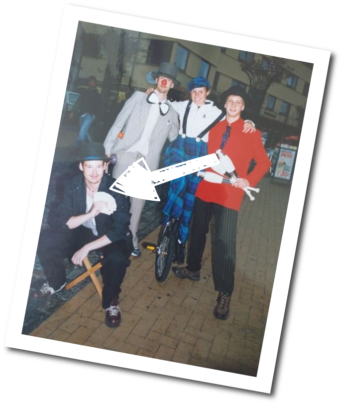 Jeg begyndte et helt andet sted – som cirkusartist. Jeg er uddannet klovn, tryllekunstner og lommetyv og rejste i mine unge år rundt og optrådte. Det lærte mig at fange og fastholde menneskers opmærksomhed – og at stå stærkt på en scene.